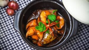 Mực tươi hấp cùng hành và gừng, giữ nguyên vị ngọt thanh, mềm giòn sần sật